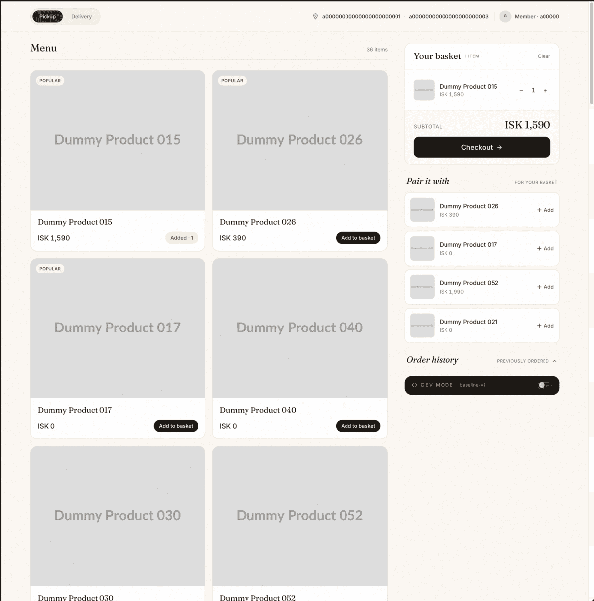 This project started as a practical checkout problem: suggest products a customer may want before payment, while keeping the first version simple enough to inspect and measure. The service uses historical order lines, product catalog data, branch availability, customer history, and current cart contents to return ranked product cards for a checkout flow.
